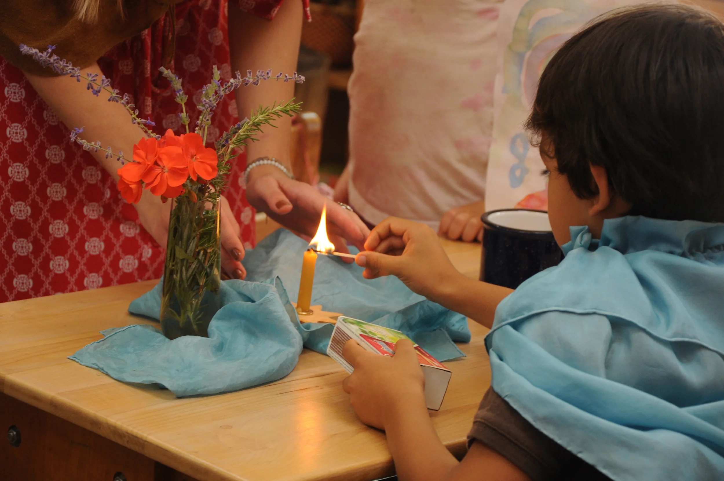 In the classroom, they enjoyed a similar simplicity. A candle, a verse, a beautiful watercolored card with words from each child. They enjoyed tea while we passed pictures and told a couple of stories. The children were invited to share stories about him, and we were struck with how extremely young and sweet eight is. They aren't restricted by doing it right, "looking good" or even making sense. Their stories were like haikus, or poetry of moments. Observations they had made from a place of very little separation. Their teacher, who's strong and wise and lovely, asked each family to forego treats so no child is left out, and to forego small gifts for the classmates, because "we're focusing on spiritual gifts this year."