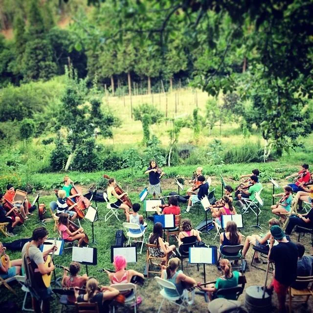 photo by Yale Creek Crew. "One of the many things we do here at Yale Creek Brewfarm is host a #farm camp. Many of our campers are talented #musicians and every night put on a mini#symphony performance in the yard."