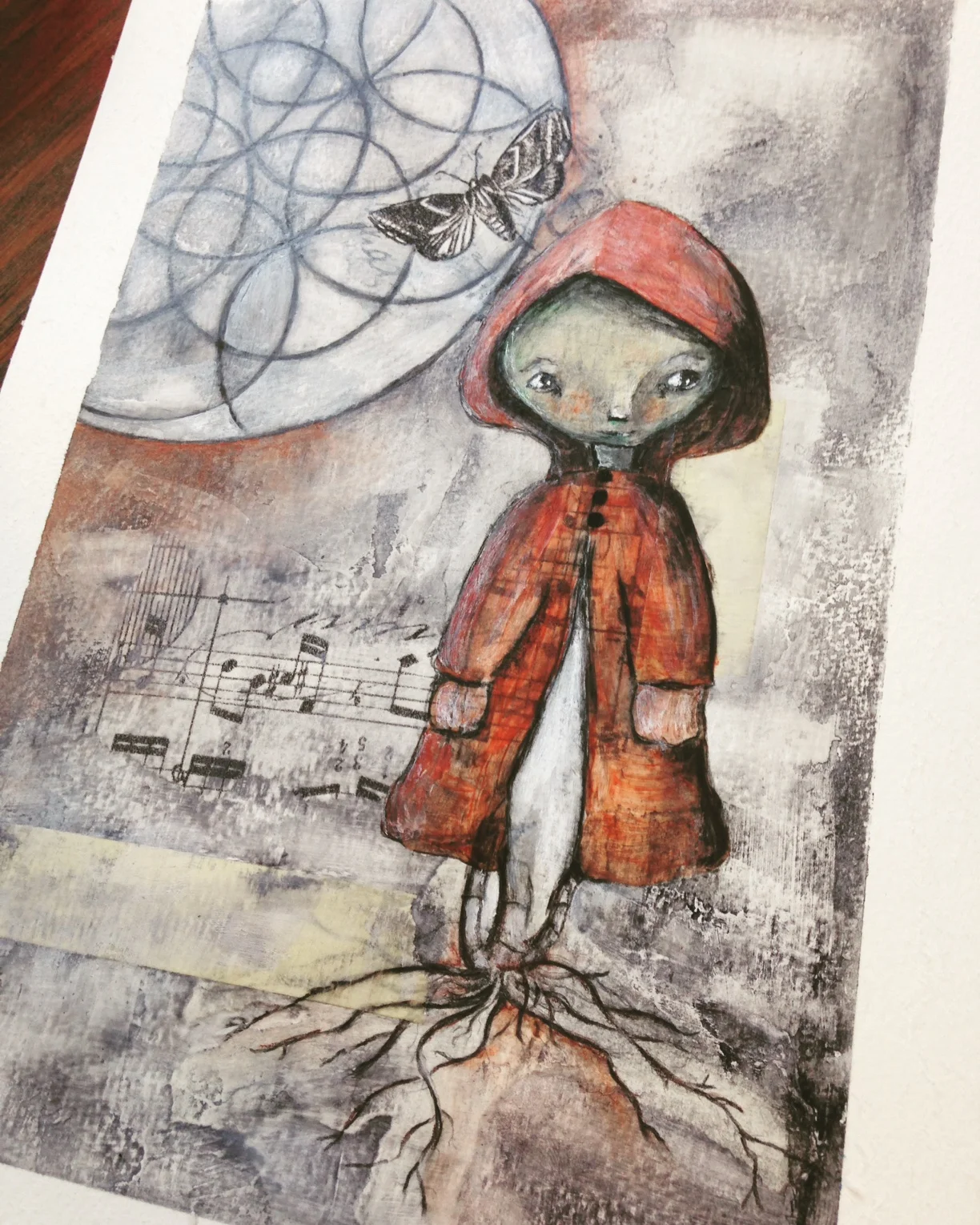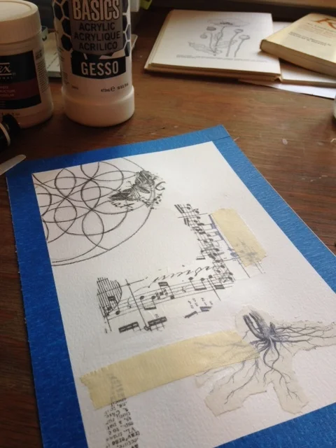 I generally don't have a specific outcome in mind when I start these pieces...for me, it's a very similar process to veil painting. It's meditative and involves lots and LOTS of layers that eventually reveal what needs to be seen. (on the left shows the first 2 layers of the finished piece.)