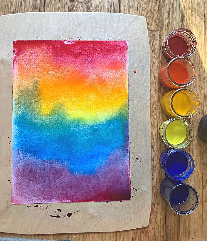 Colors are introduced very slowly and purposefully; each is given a personality and mood. The unfolding of color in this way allows the children to build a connection to each as individuals. In the Grade One painting course, the colors carmine red, lemon yellow, and ultramarine are introduced and worked with through the use of verse and song. (To learn more about first grade painting and the philosophy behind it, click here!)