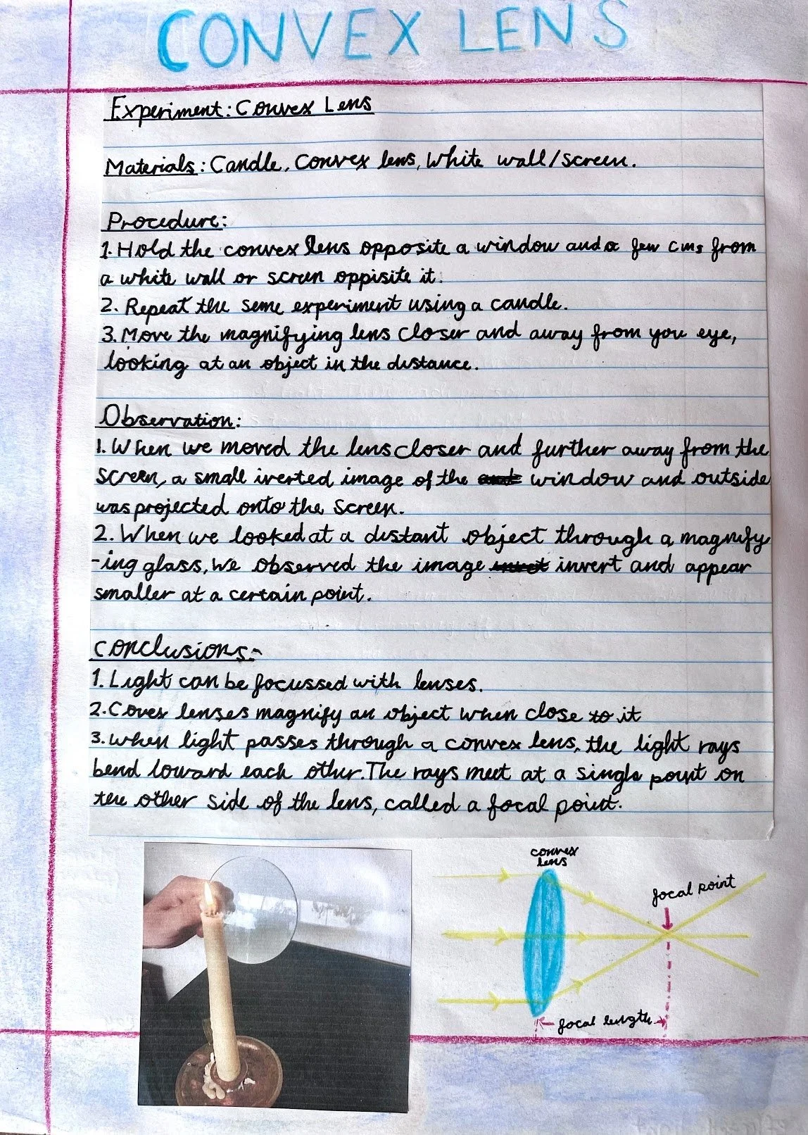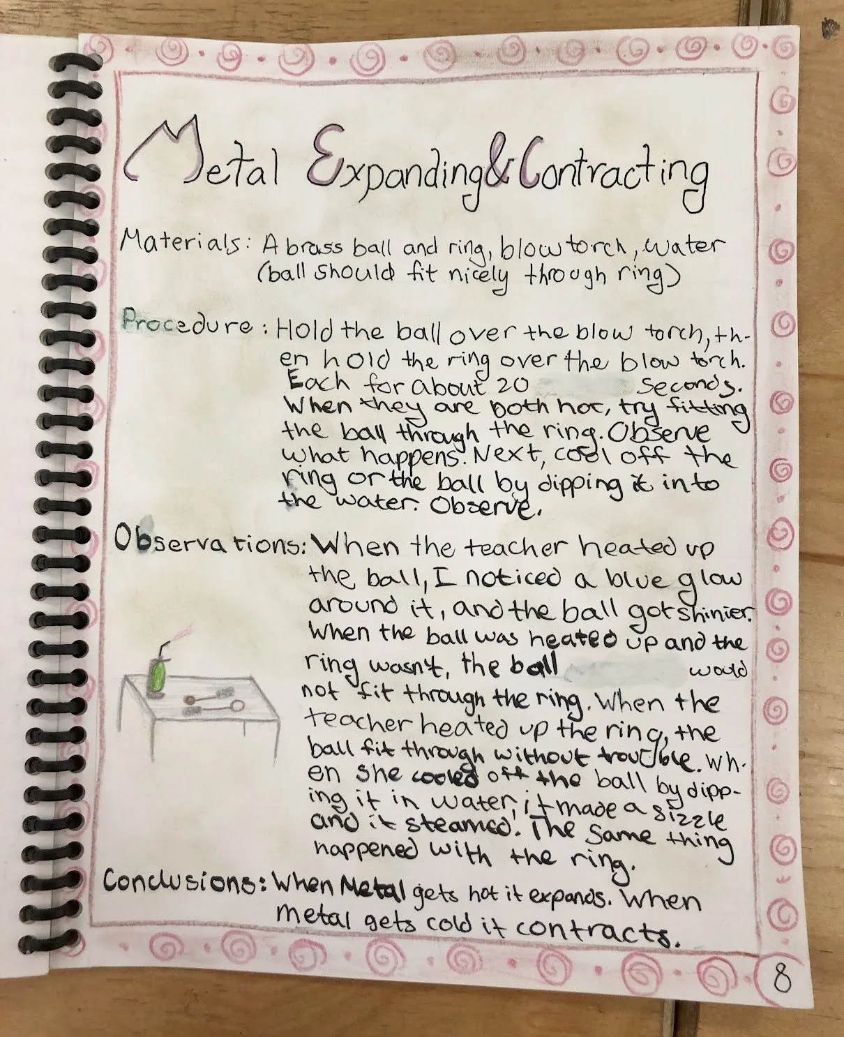 After working through an experiment and discussing the results, it’s time to bring it all together in a science write-up. This is an example of student work after observing how metal expands and contracts; the laws of thermodynamics in action!