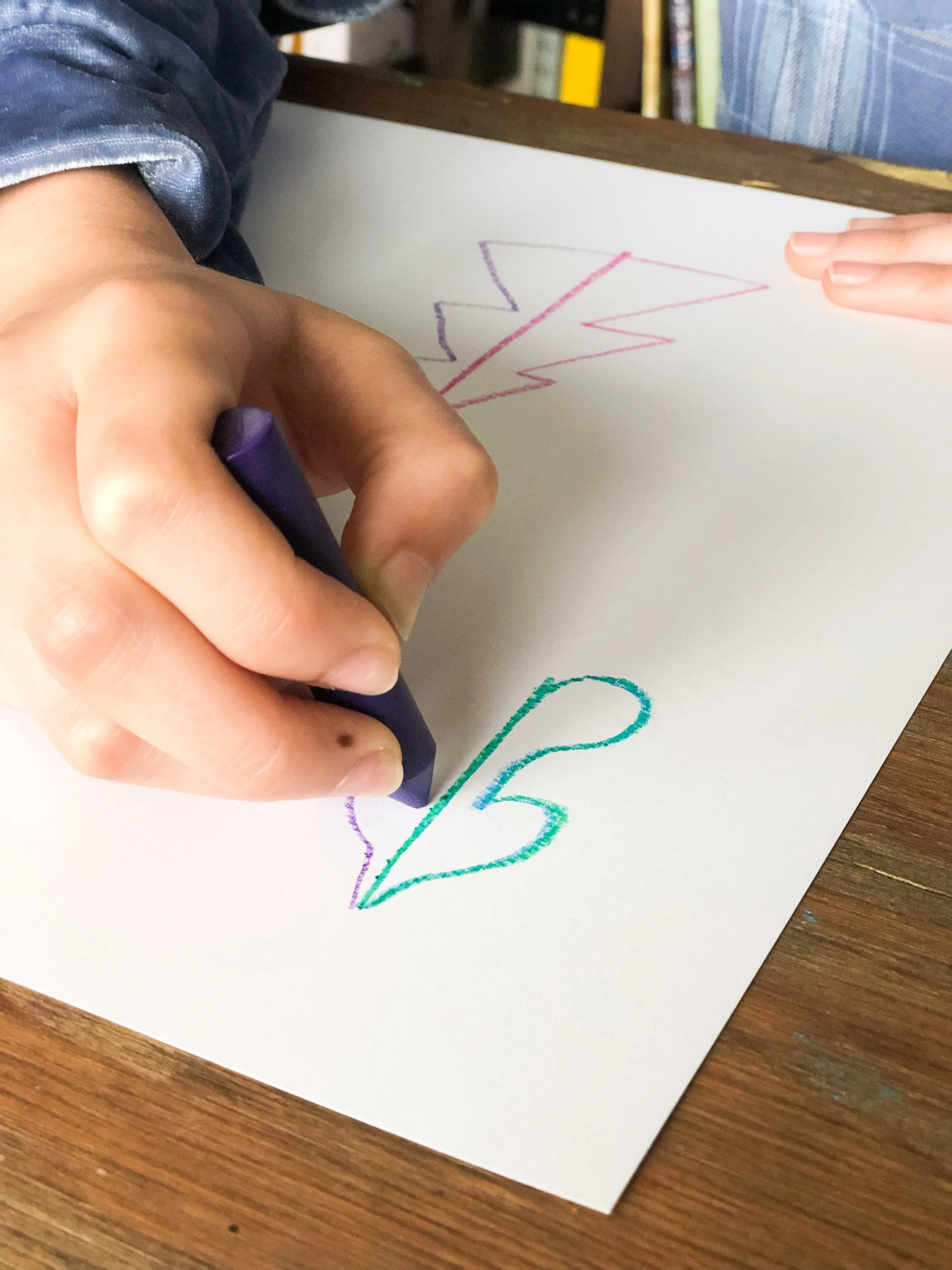 In first grade, we strive to bring the child into a balanced relationship with inner and outer space. This is achieved by highlighting very basic elements of movement/space. The child needs a basic introduction to the simple but profound truth that there are really only two kinds of movements and/or lines, the straight and the curved.